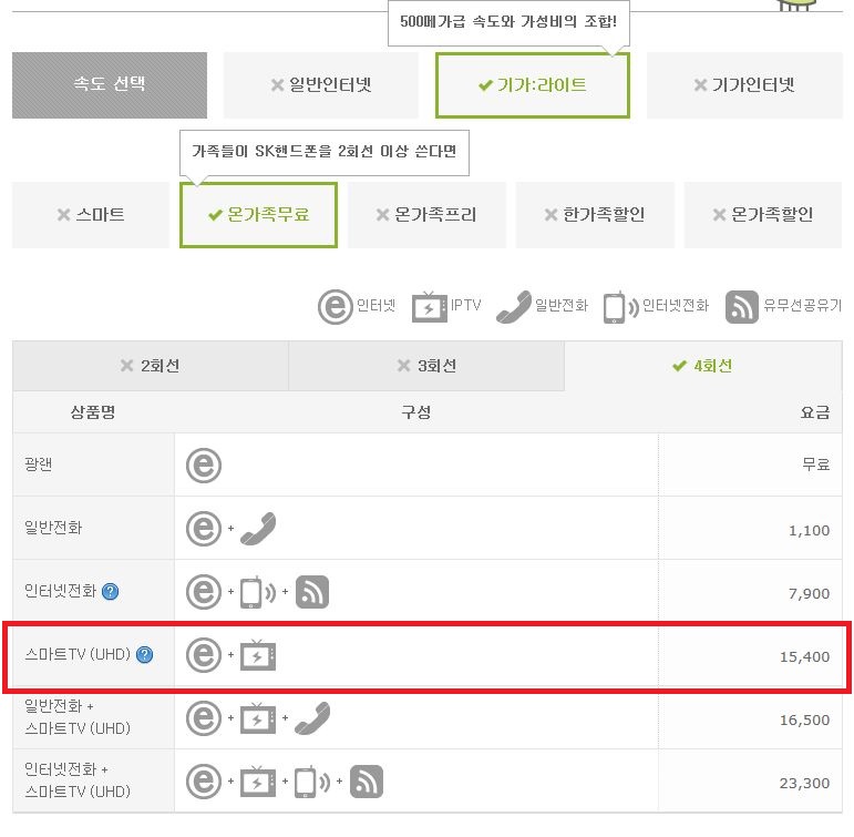 그렇다고 체크해주신 상품 <SKT 온가족무료>로