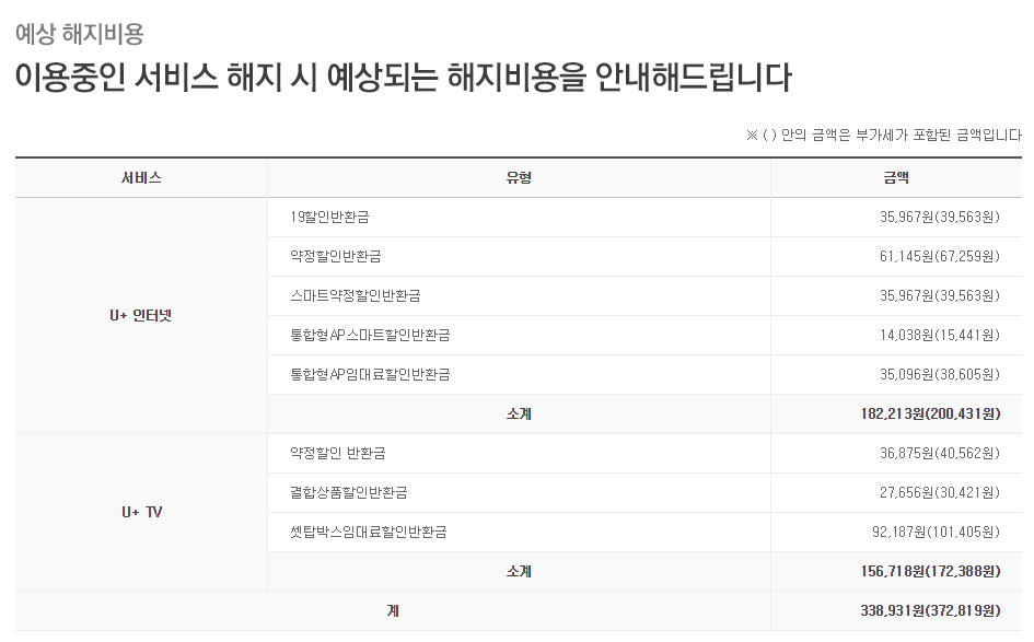 즉, 오늘 월요일자로 LG본사로 전화하셔서 정확한 위약금을 알아보시는 것이 우선이 될텐데요~