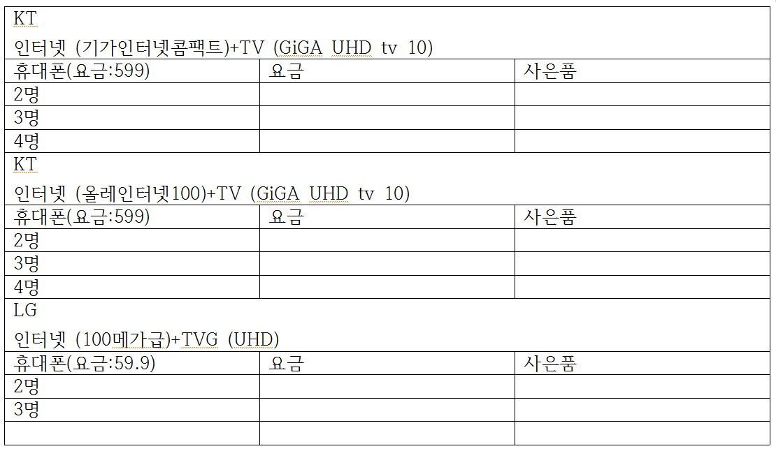 -> KT로 인터넷 + TV 가입을 고려 중이시군용!
