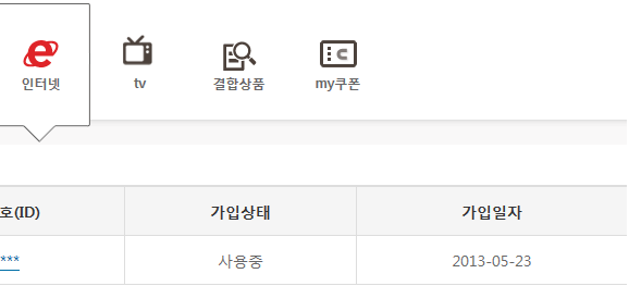 인터넷과 TV의 가입일자가 2013년 5월 23일, 24일인데요~