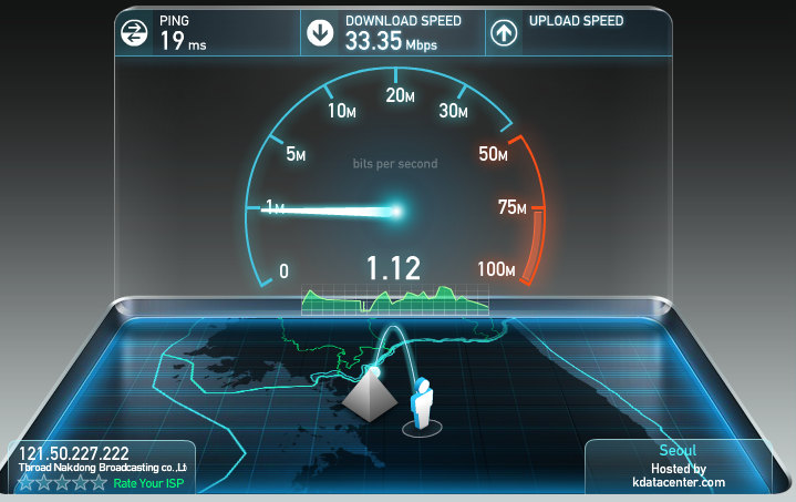 * 참고로 어제 1시간동안 측정해보니 핑은 17~24ms, 다운로드 속도는 25~65Mbps, 업로드 속도는 5~15Mbps 입니다.