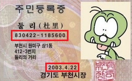 제가 첨부해드리는 둘리 ^^ 신분증의 하단 발급일자를 작성해주시면 되죵!