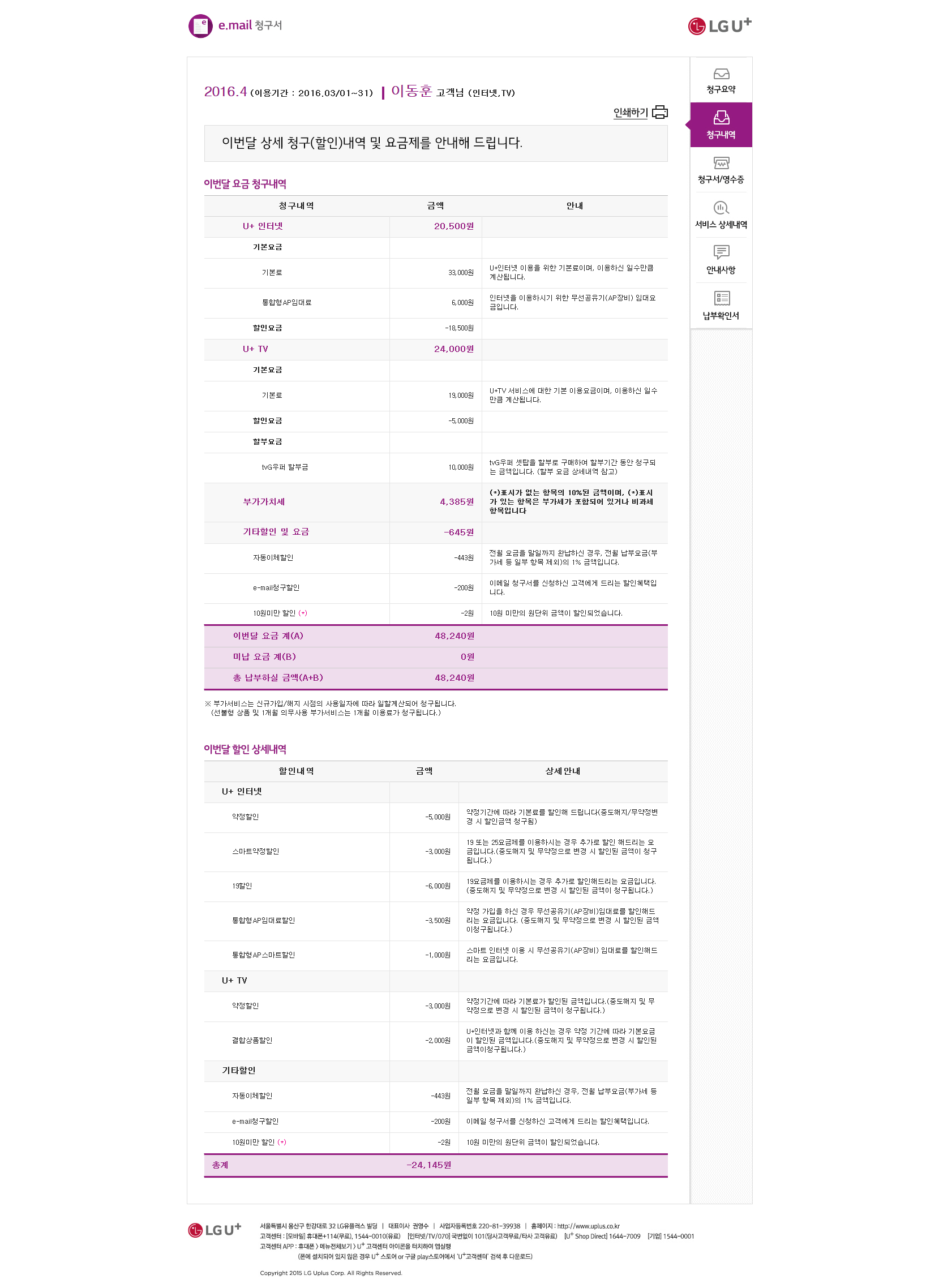 보통 핸드폰과 결합해서 요금할인을 도모하시는 경우가 아니라면,