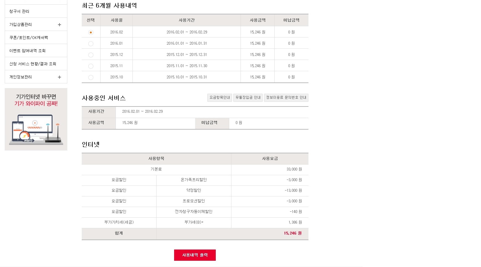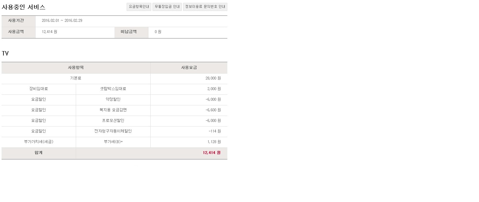 지난번엔 수급자할인으로 계약을 했고 계약내용은 아래와 같은데요