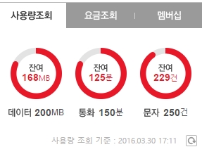 3월1일~3월30일까지 사용한 양입니다.. 보시다시피 제가 잔여량이 굉장히 많아요.. 3만원대 요금제인데 제가 거이쓰질 않아서