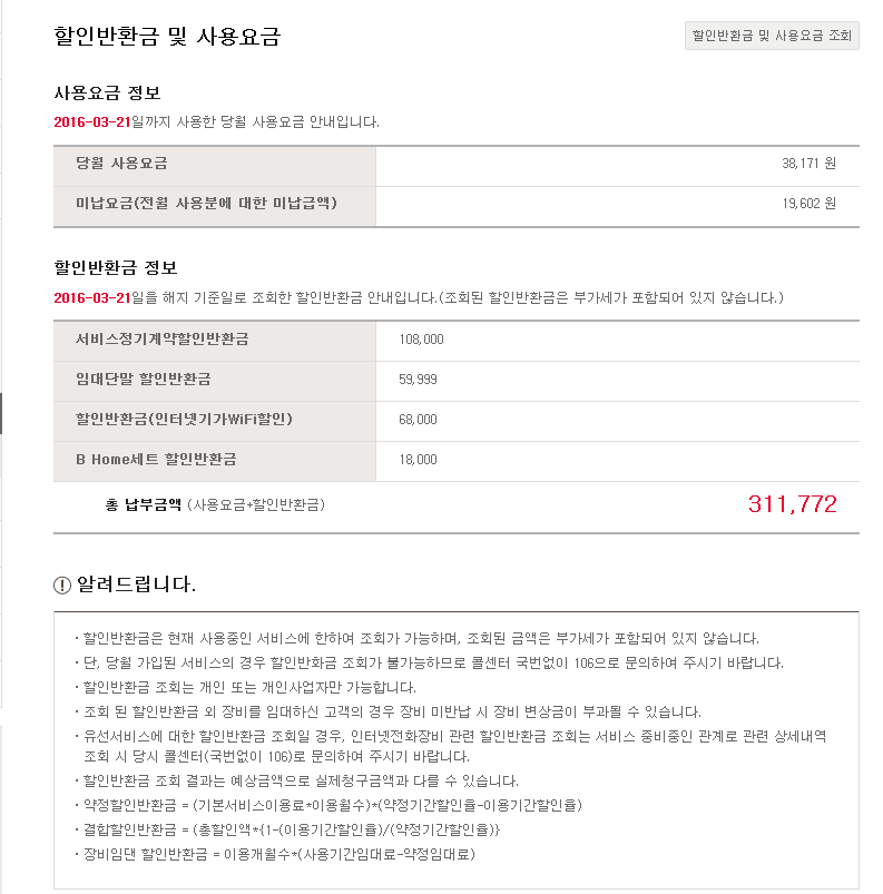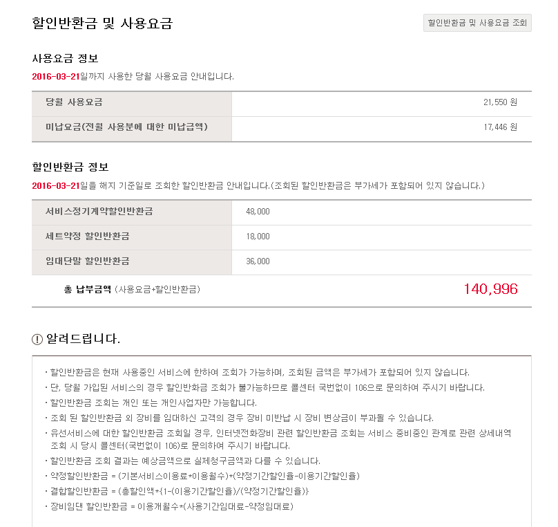 가입당시 요금할인을 많이 받아서 반환금이 청구되었다는 것을 확인하셨군요 ㅠㅠ;;