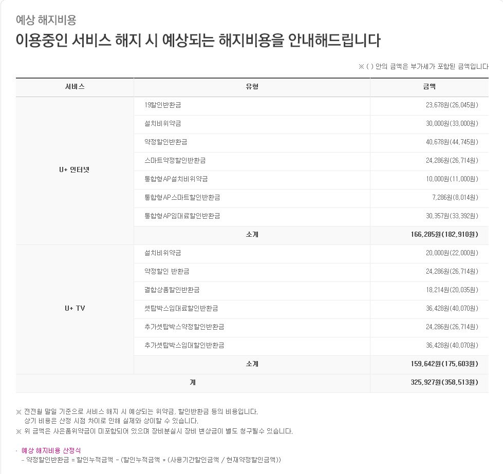 백메가를 통해 kt나 sk로 갈아타려고 lg에 예상 해지비용을 알아봤더니
