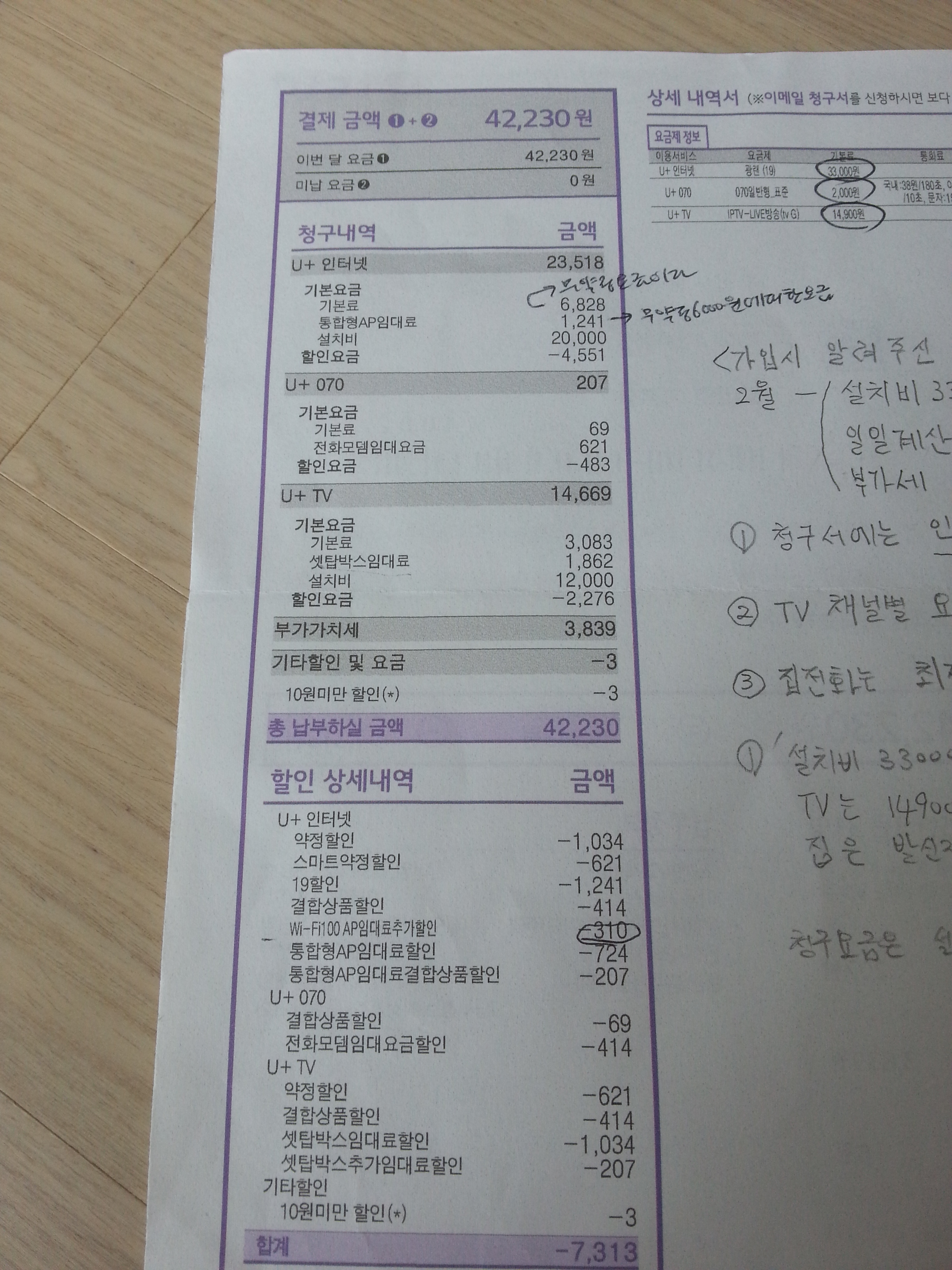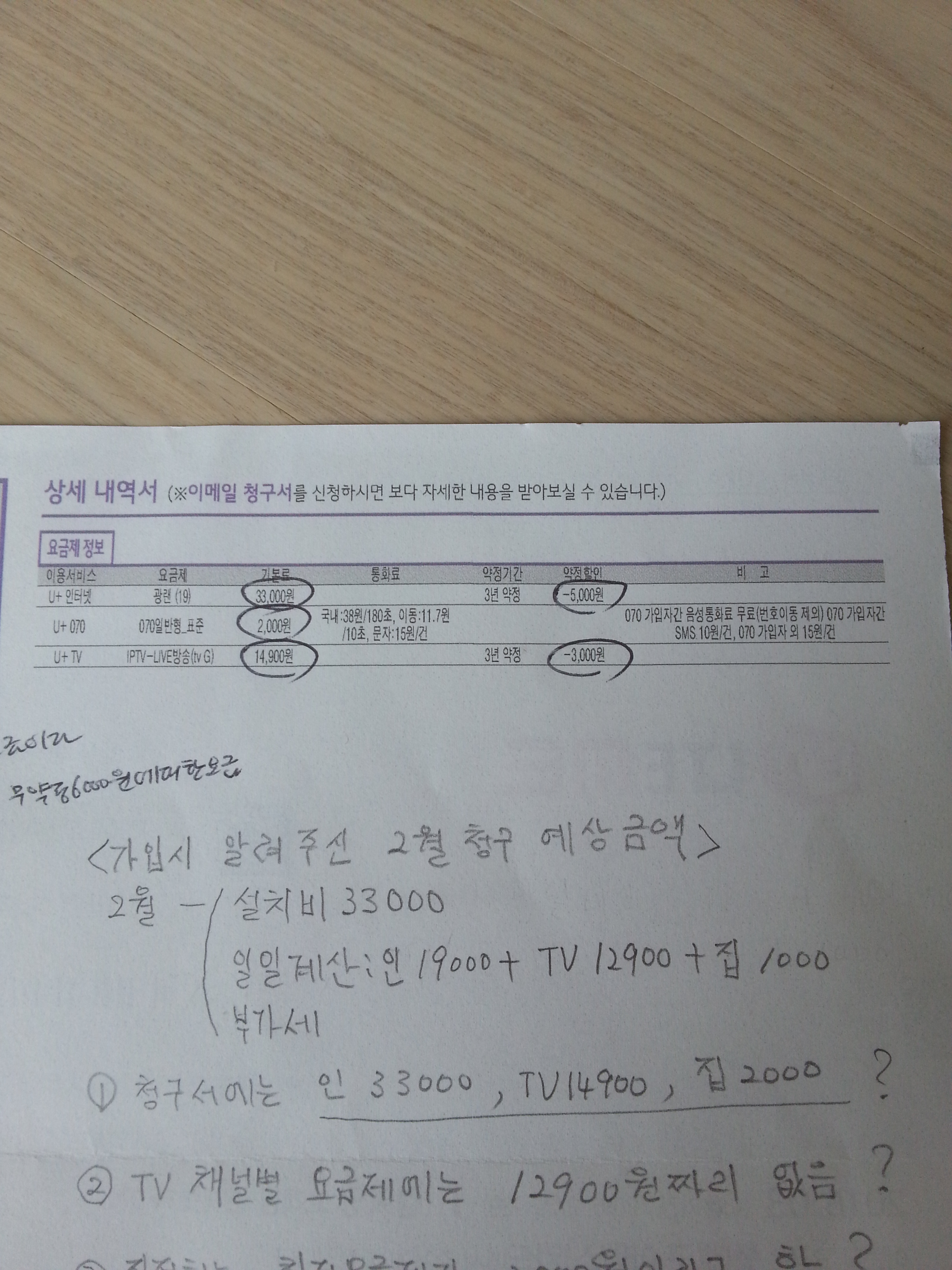 분양아파트에 입주해서 거기에있던lg영업부스에서 2.24가입했는데이번에 고지서를 받아보니 너무나 달라서요.