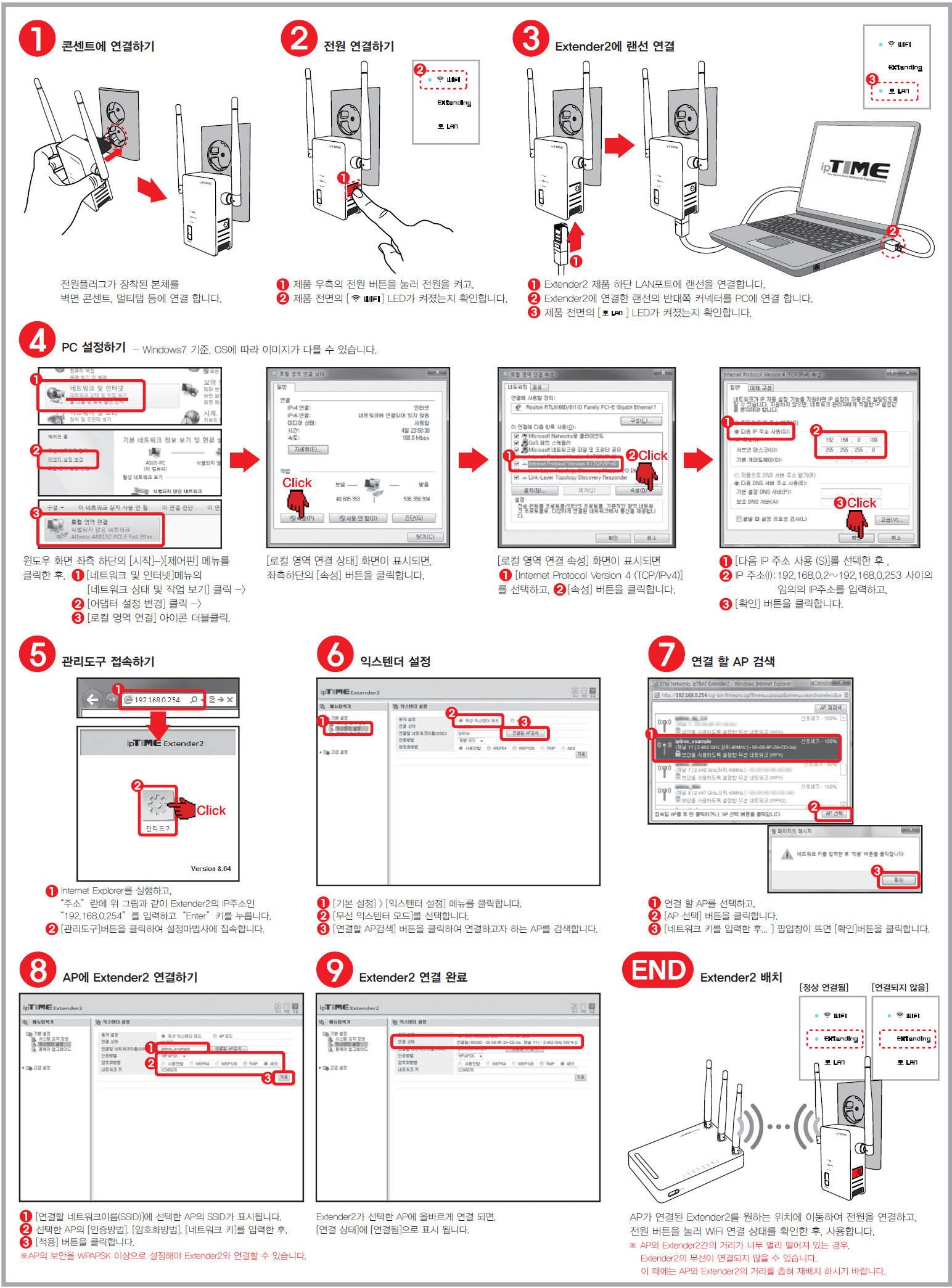1. 익스텐더와 컴퓨터를 랜선으로 연결하시고