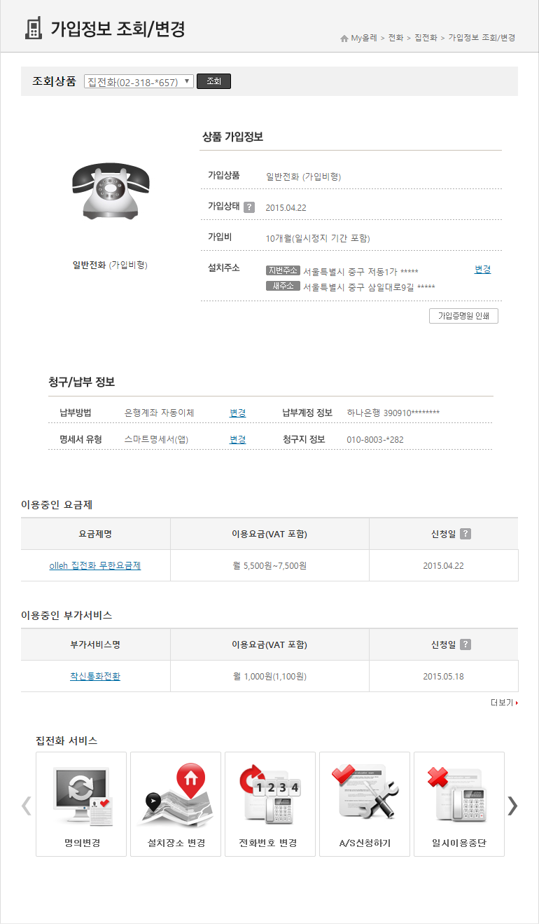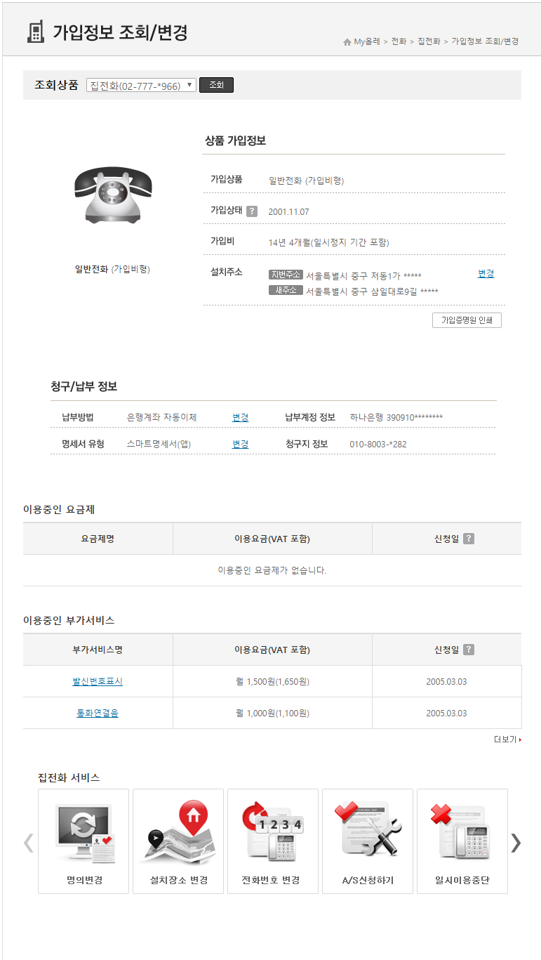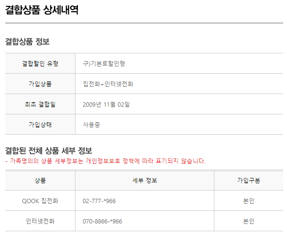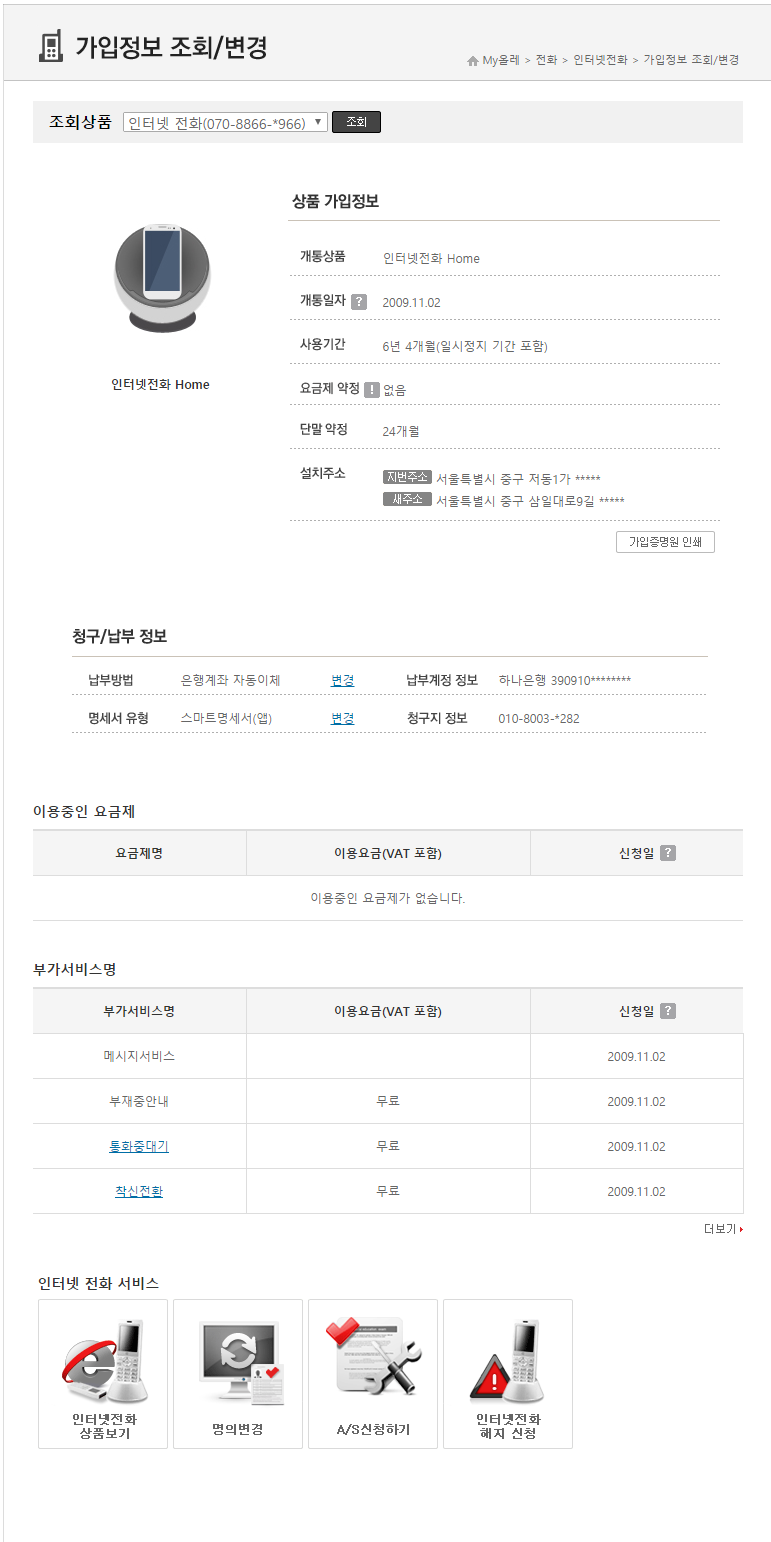 전화 하나와 인터넷전화는 아주 오래된 것 같네요! 2009년 11월 결합하신 것 같고요~