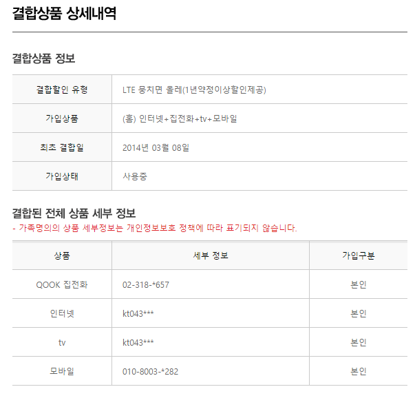 LTE뭉치면올레로 핸드폰도 결합하여 결합할인도 적용받고 계신 상황이군요~!^^