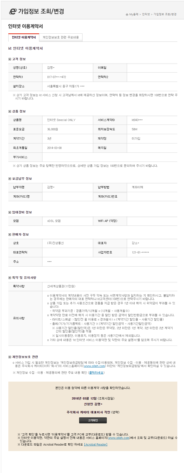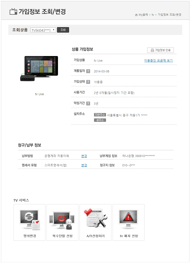 그리고 2년 전, 2014년 3월에 인터넷, 전화, TV, 모바일까지 모두 가입 및 결합해주셨고요~