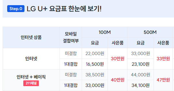 그럼 LG인터넷 기준으로 요금과 사은품을 살펴보겠습니다.