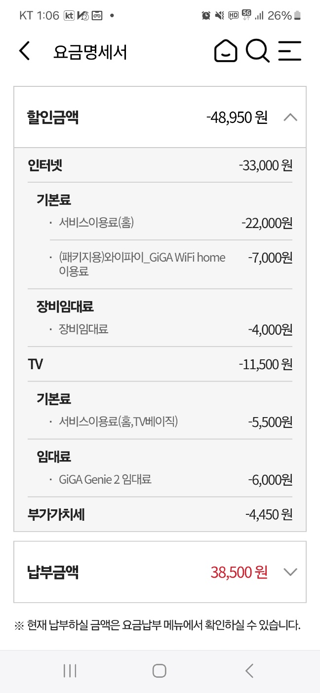 -> 즉, 휴대폰 할인까지 고려해보면 실질적인 체감요금은 38,300원에 이용하시는 셈!