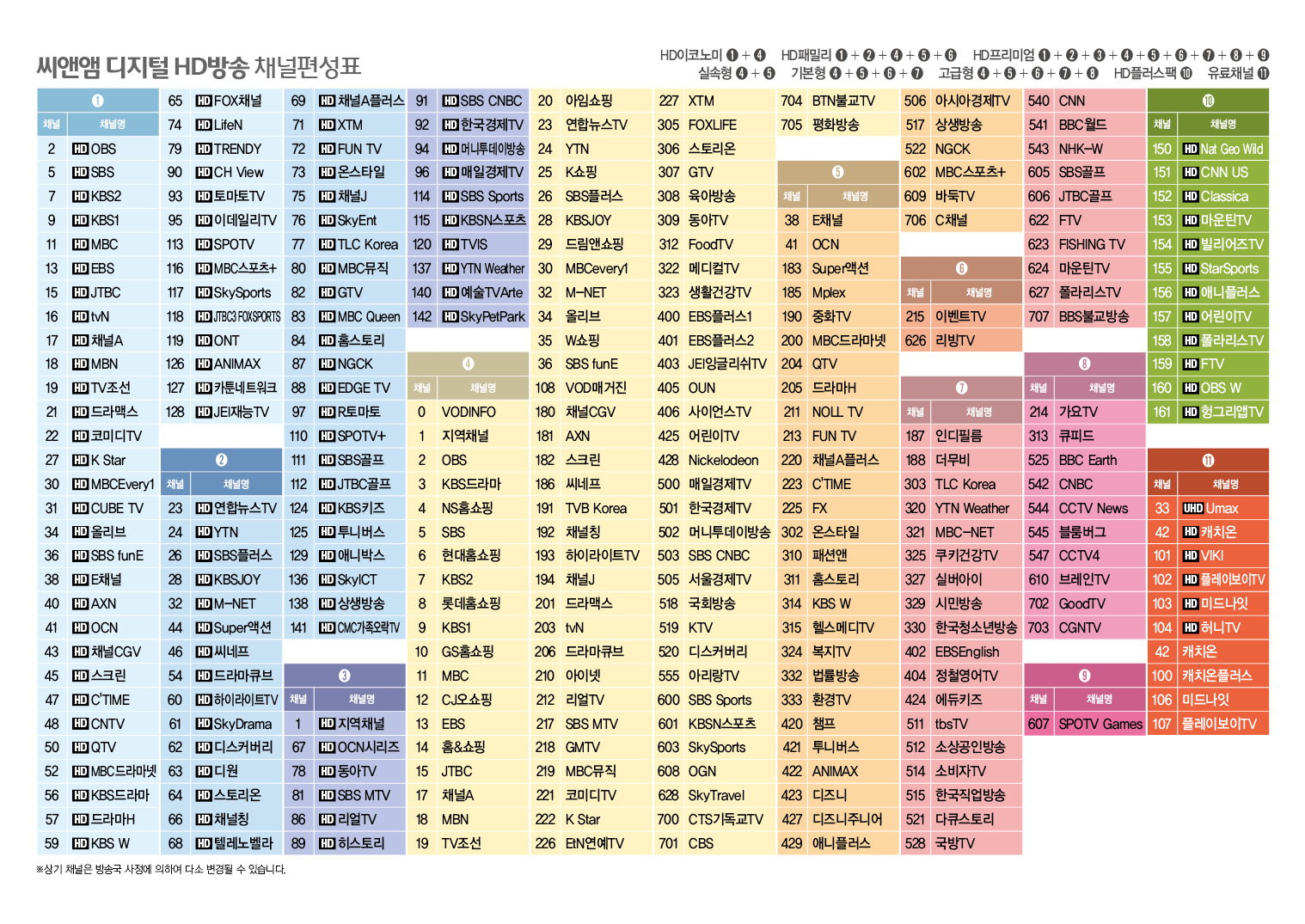 걱정하실까봐 제가 이미지로 채널편성표를 첨부하였습니다 호호호 ♡