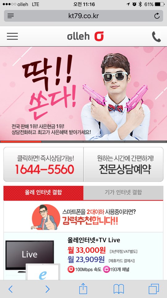 결합은 <인터넷뭉치면올레>로 해주시면 되구요~!!