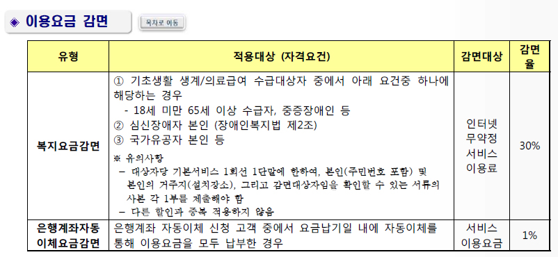 요약하자면 인터넷 쪽에서 복지할인을 받는 것은 무의미하고요~