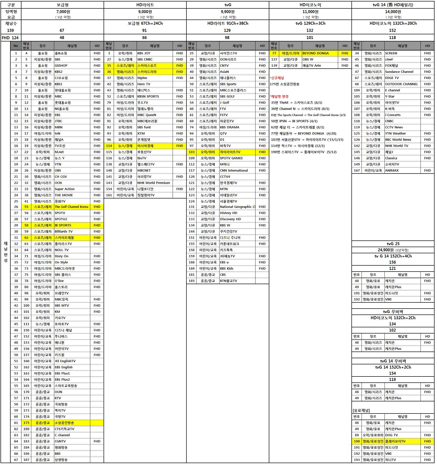 [보급형 채널 + HD 라이트 채널 + TVG 채널]을 모두 포함한다고 보시면 됩니당!