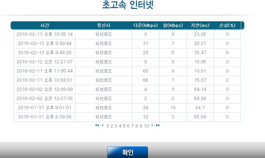 이 경우에는 티브로드의 속도측정 사이트인 http://speed.tbroad.com 를 이용하셔야