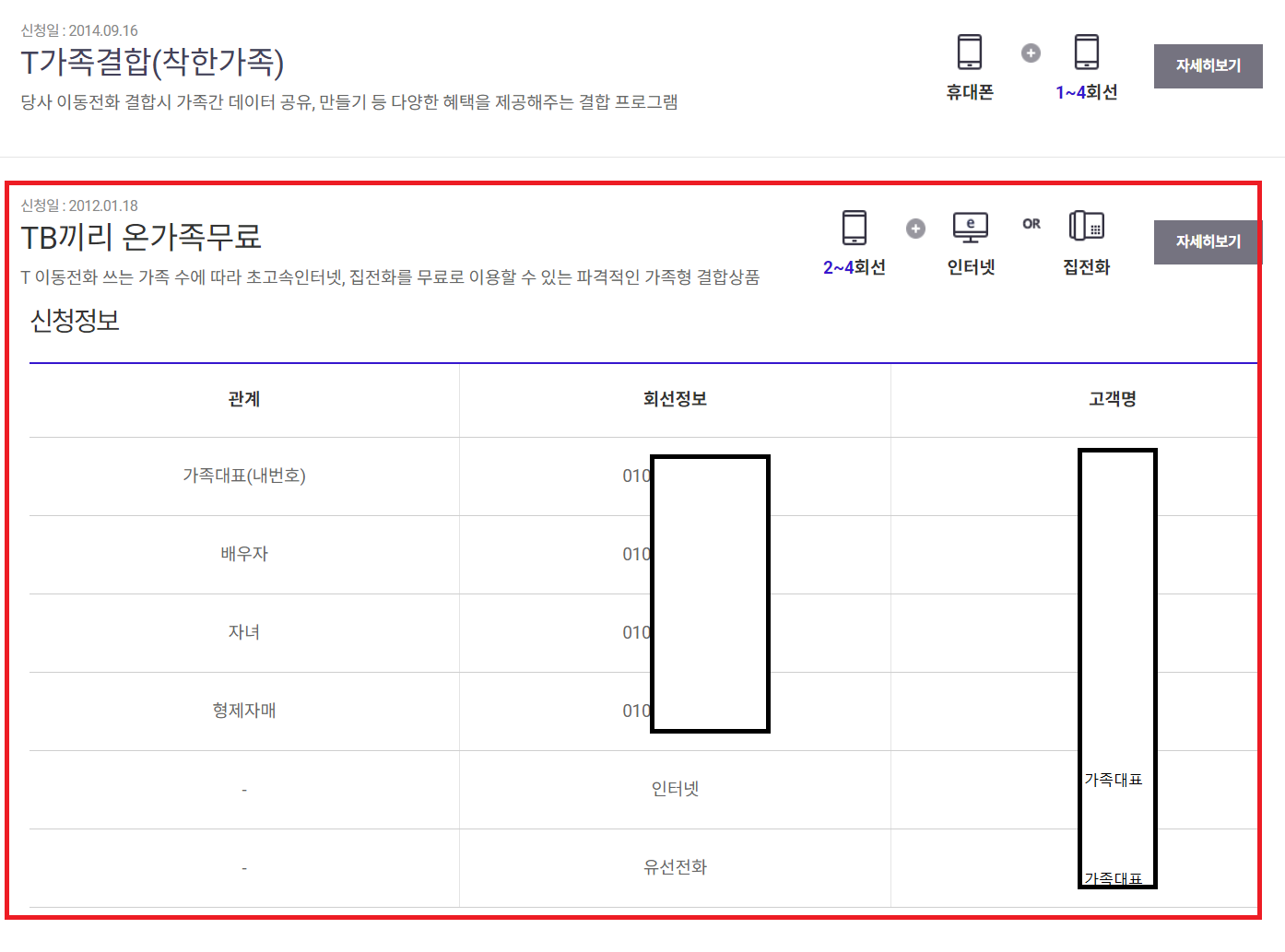 온가족할인에 결합된 다른 가족분이 <나>집의 인터넷 명의자가 되어야 해요 !