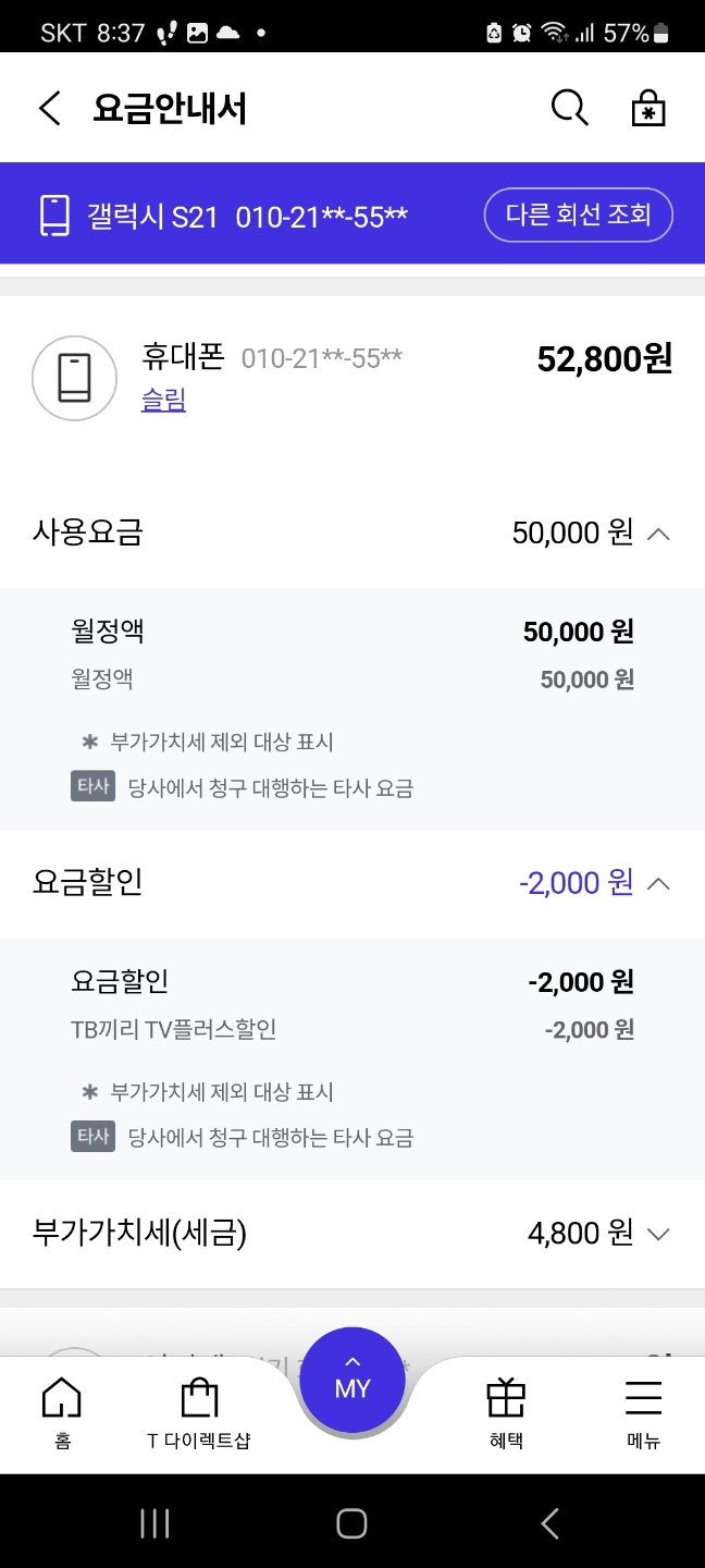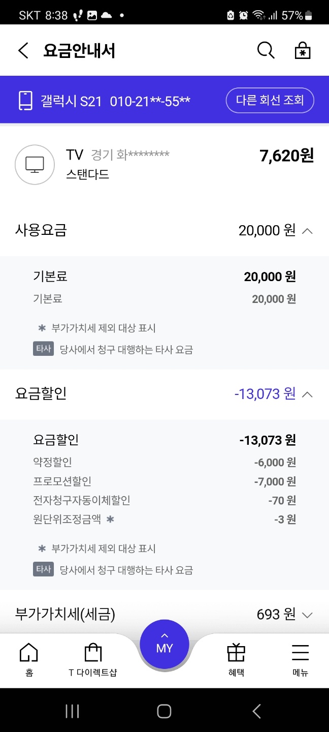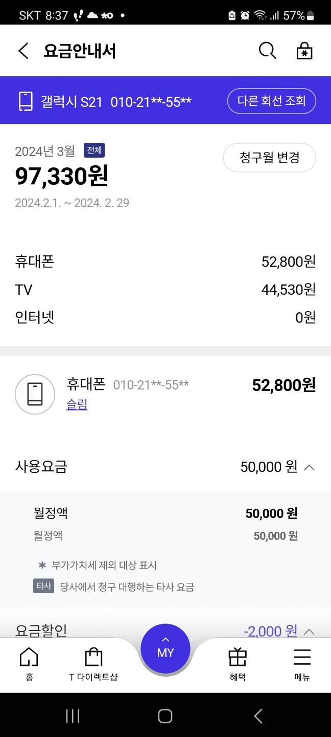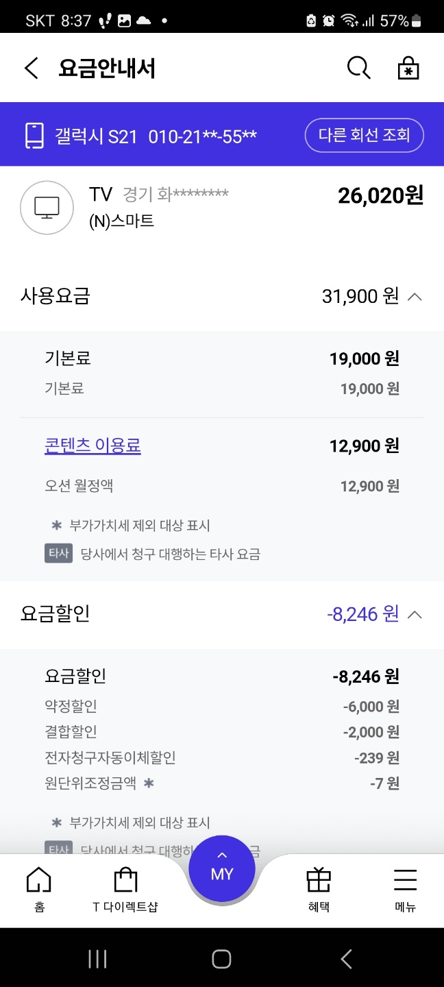 ▼ 셋탑2 (원스톱 이용료는 무시하셔도 됩니다. 동의없이 가입된거라 환불받았습니다..)