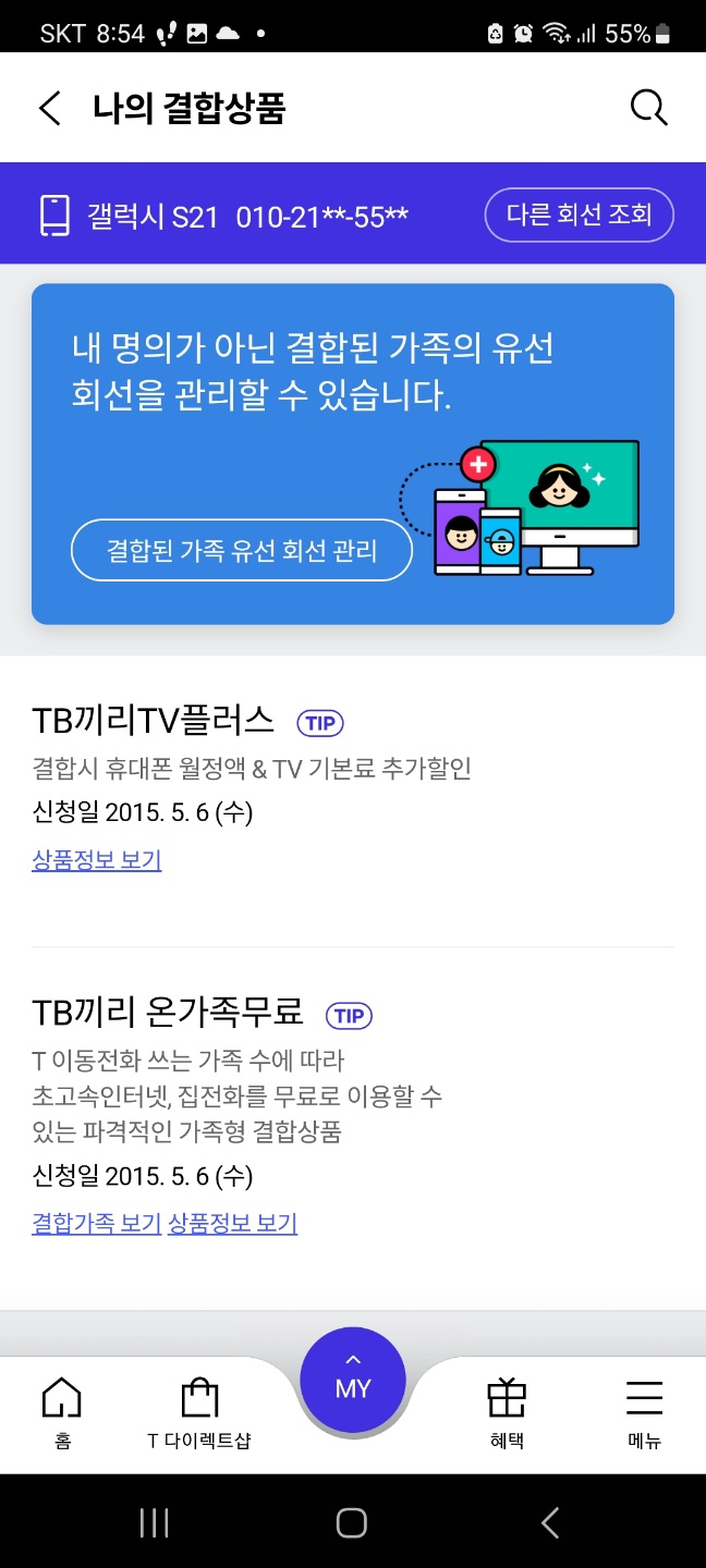 ※ 결합정보 : TB끼리TV플러스(휴대전화1 + 셋탑1)