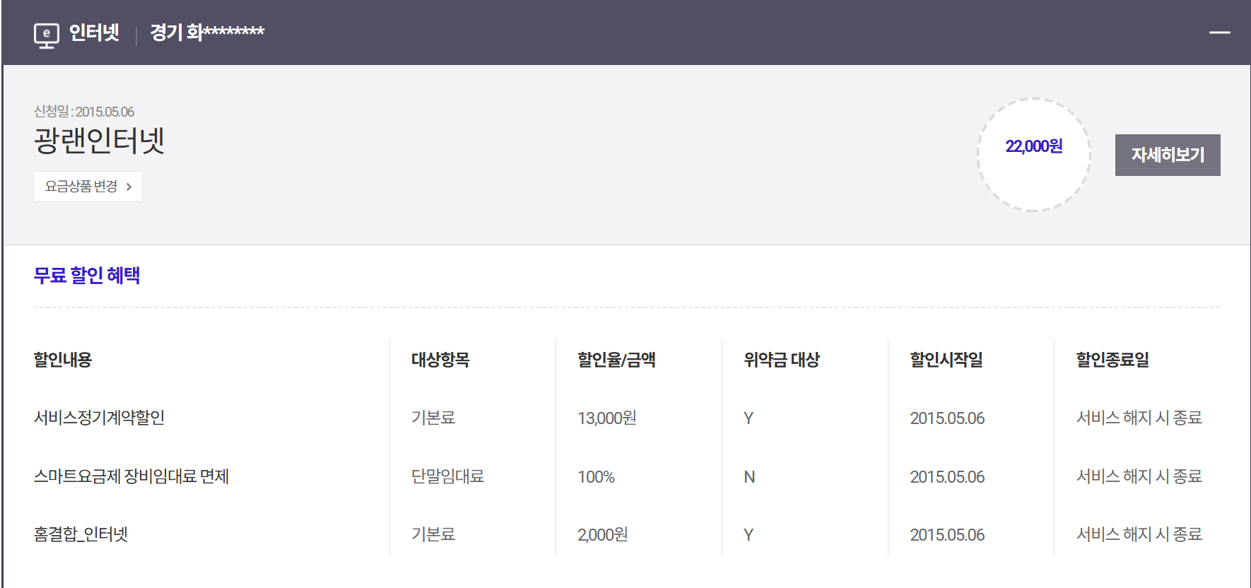 ㄴ 인터넷    : 약정한지 9년.   -- 100메가 사용중. 집에 PC 1대