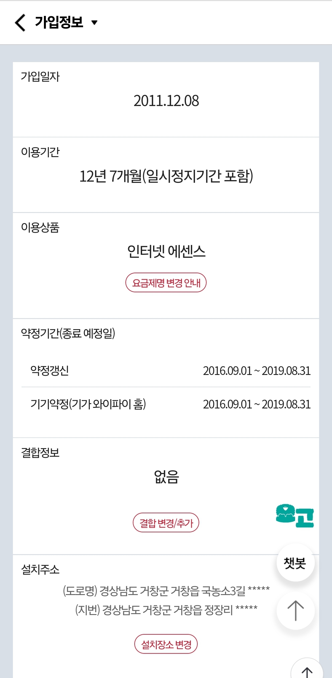 지금 인터넷 상태는 이렇습니다 따로 결합도 안되어있고 약정도 진작에 끝났네요