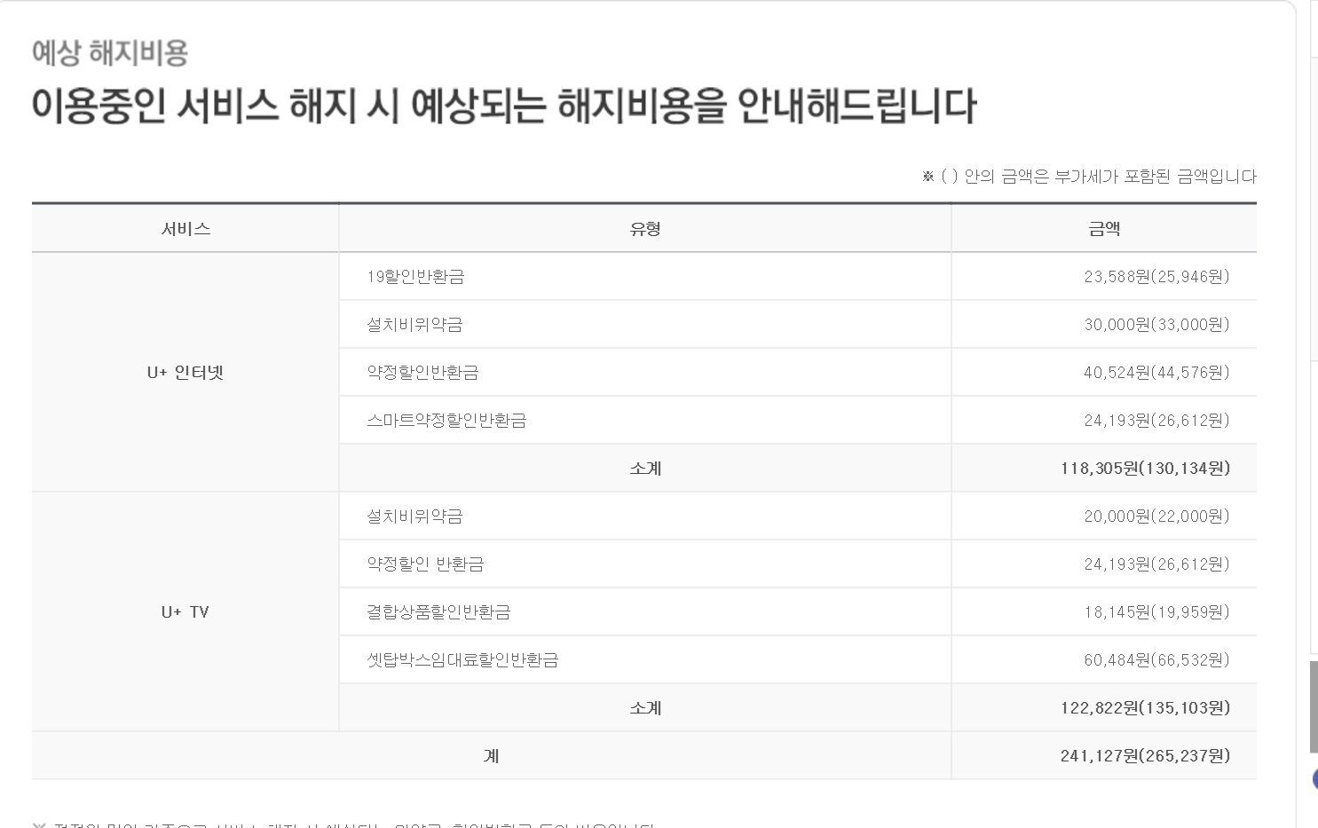지금 시점에서 총 위약금이 26만원대가 나왔다면 매우 저렴(?)한 편이랍니다! 호호^^