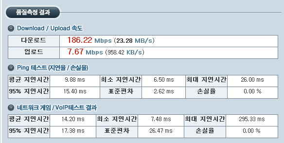 그렇다고 하더라도 확실히 100메가 비대칭보다는 빠른 것은 사실입니다 :)