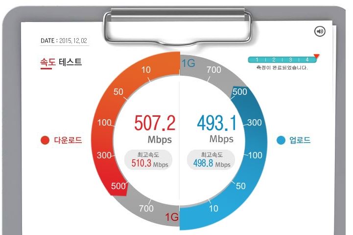 500메가 기가콤팩트를 설치하셨는데, 507Mbps가 나오다니 후덜덜....
