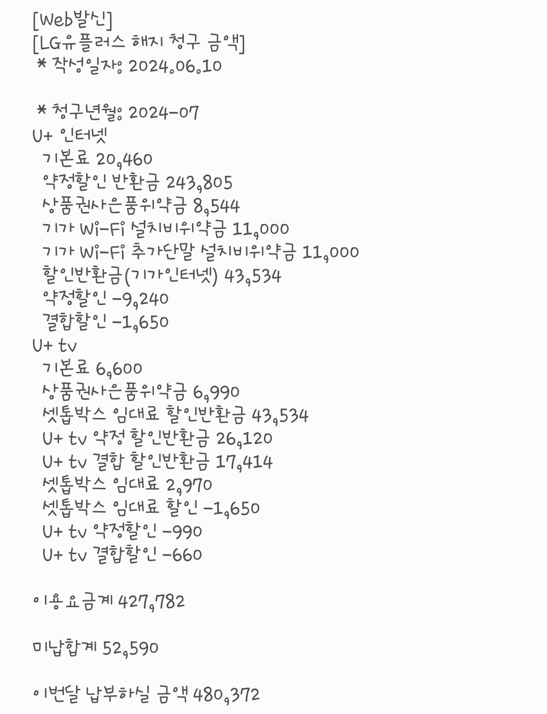 더불어 LG인터넷을 해지하며 청구되는 위약금도 납부해야 하니
