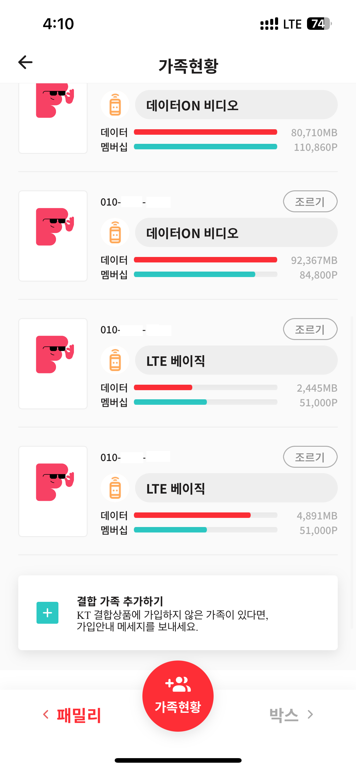 현재 가족분들의 통신 상품들은 아래와 같겠지요~~?!