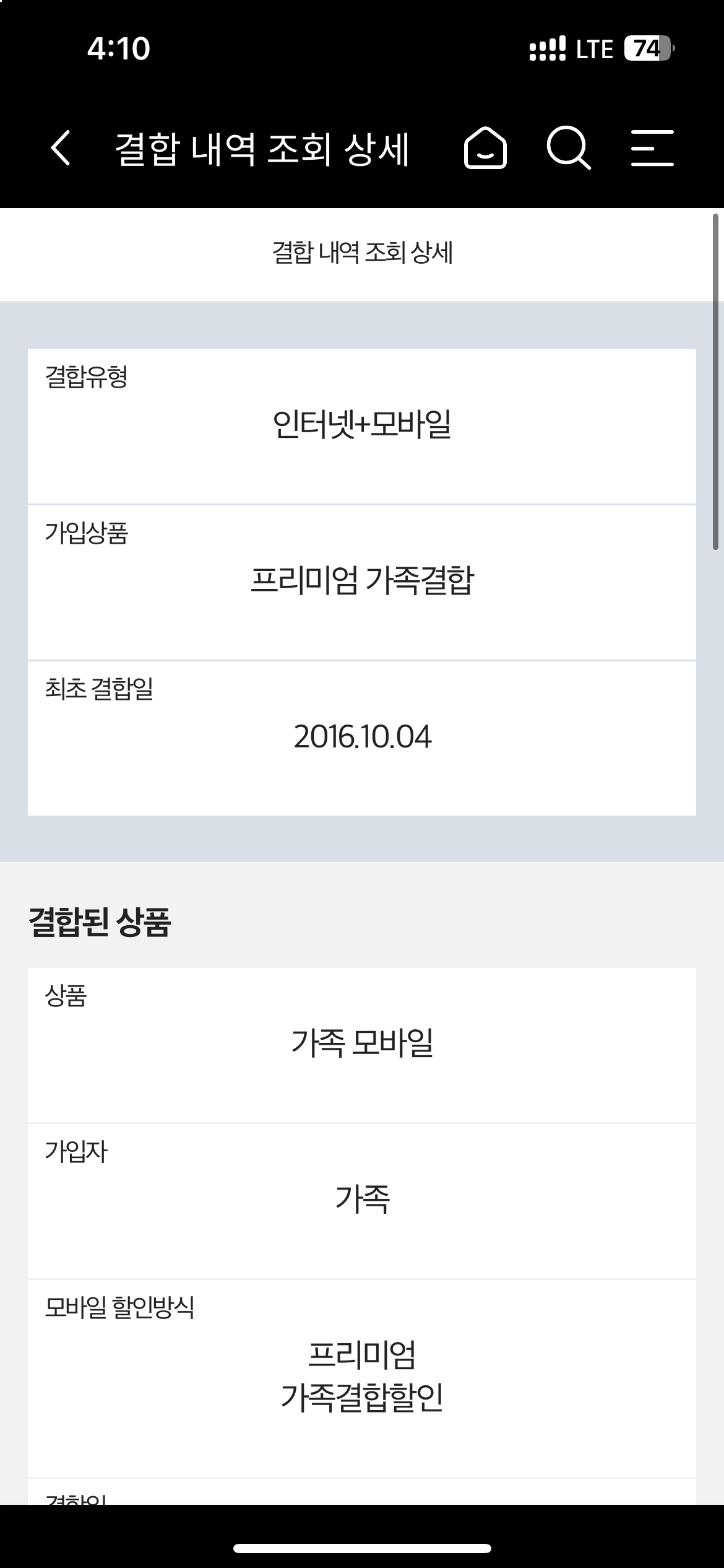 현재 KT <프리미엄 가족결합>을 적용 중이시며,