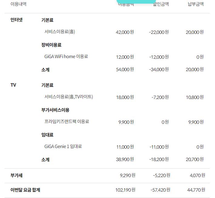 *기가급 인터넷 요금 5,500원 할인 + 휴대폰 요금 27,610원 할인 = 총 33,110원의 혜택