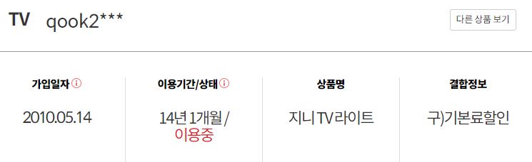어머니 명의로 지금 지니tv 라이트에 프라임 키즈랜드팩이랑 인터넷 베이직을 사용하고 있습니다