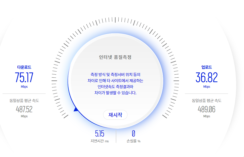 (여러 사이트(SK포함) 돌렸을때 계속 업로드속도보다 다운로드속도가 2배 빠릅니다