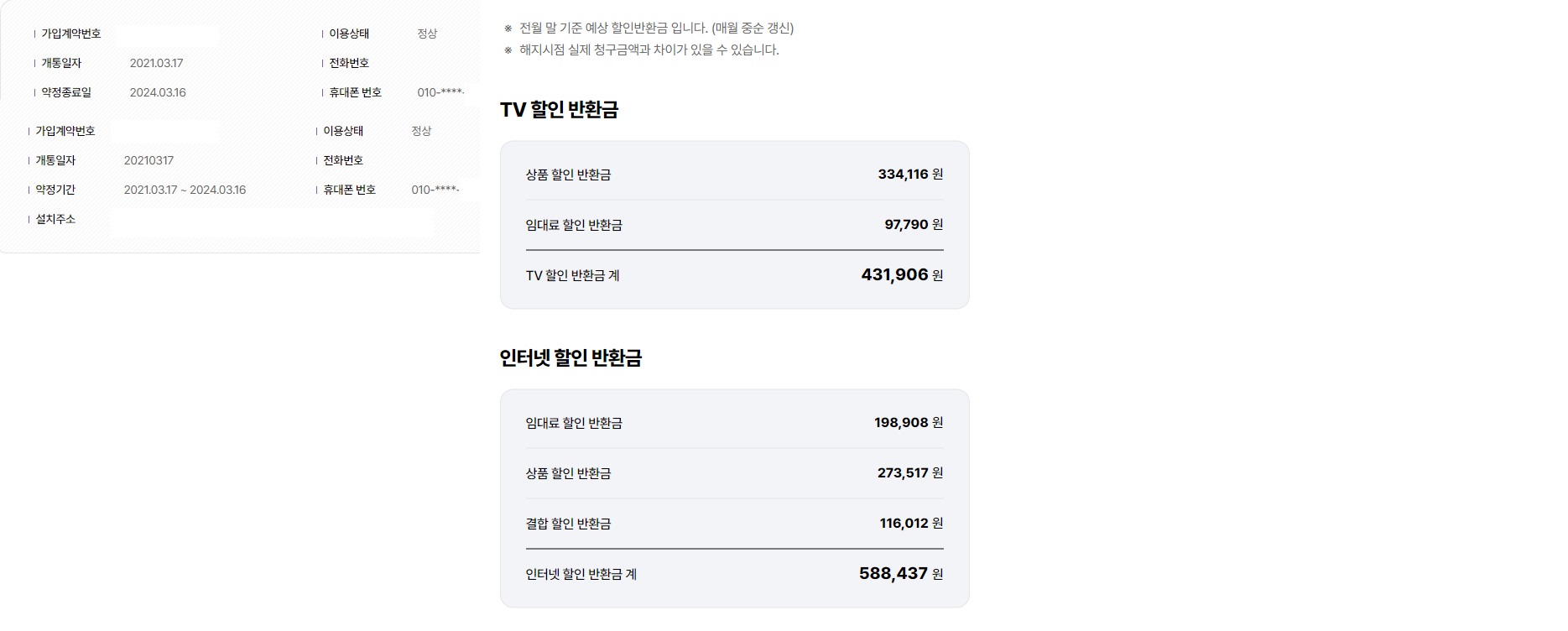 스카이라이프 TV 인터넷 결합상품 2021년 3년 약정으로 계약하여 약정이 지났는데 할인 반환금이 나왔는데 정상인가요