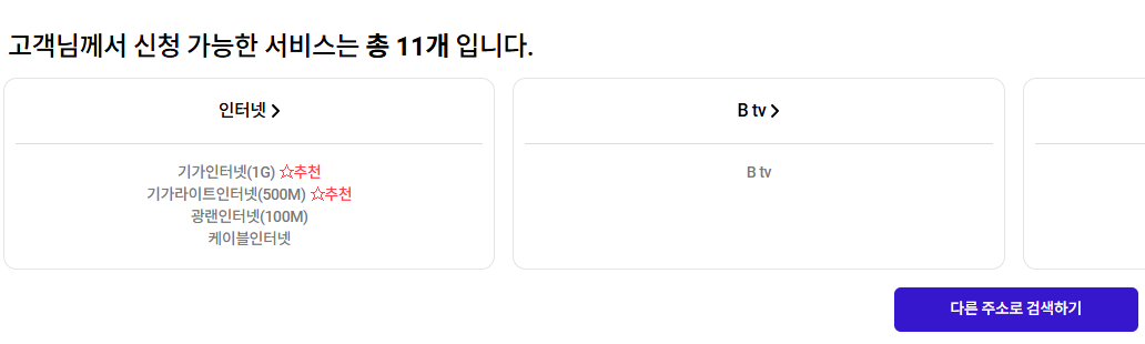 결합 가능 사업자/요금제를 사용해야 결합을 할 수 있고