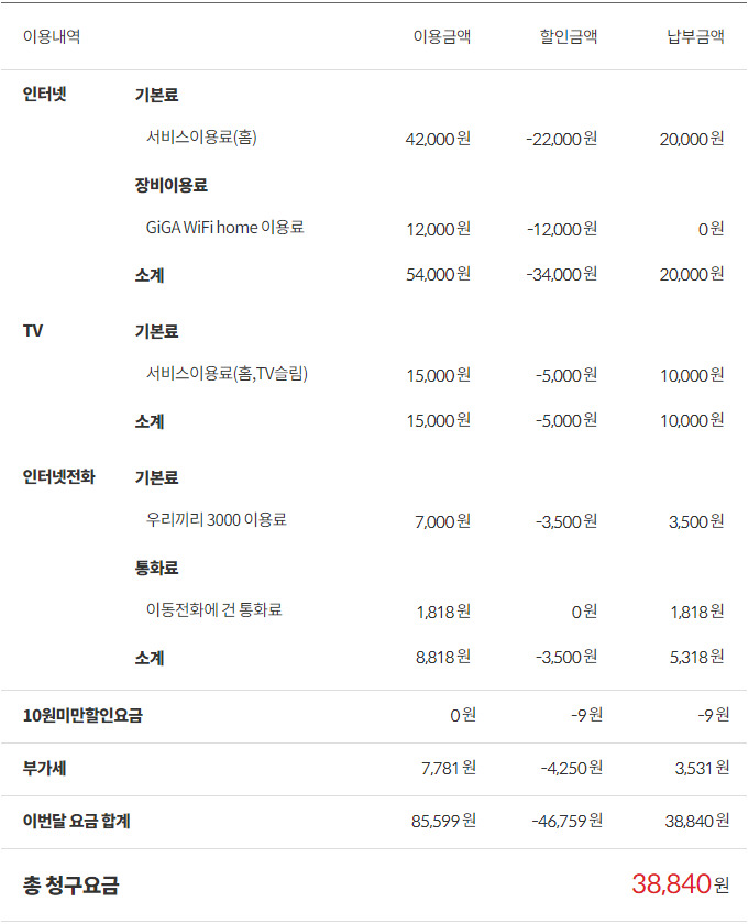◼ 월요금은 40,900원이 됩니다.