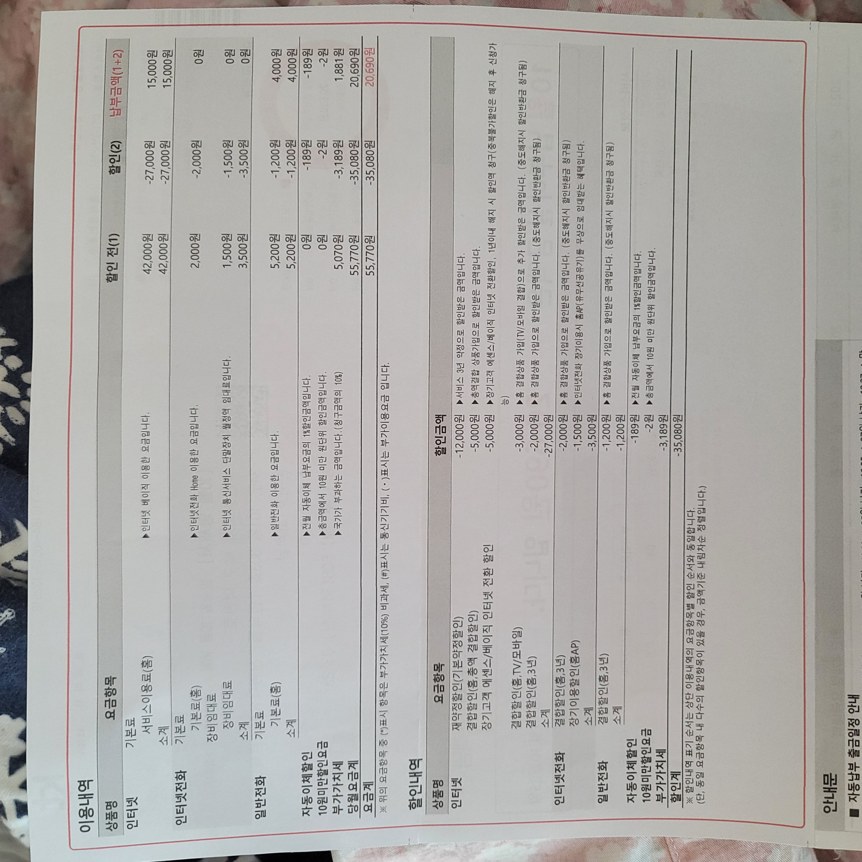 대충 3년치 계산해보니 결합할인 받는거나 현금지원 받는거나 큰 차이 없을것 같기도 해서 확인차 문의드립니다^^