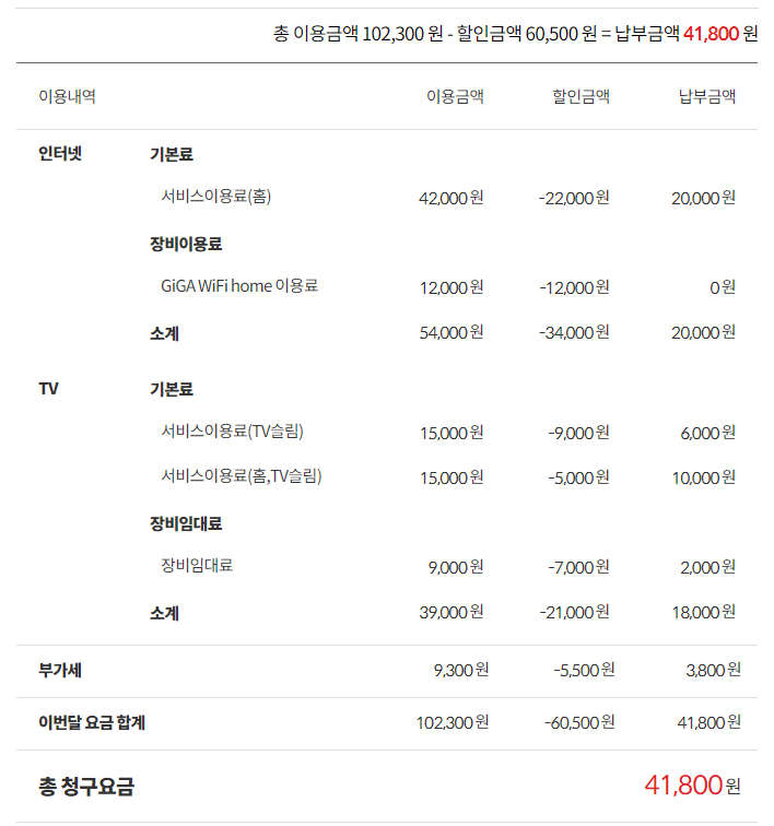 우선 500메가+와이파이 공유기+기본TV 2대 가입 기준으로 계산해 드리면~!?
