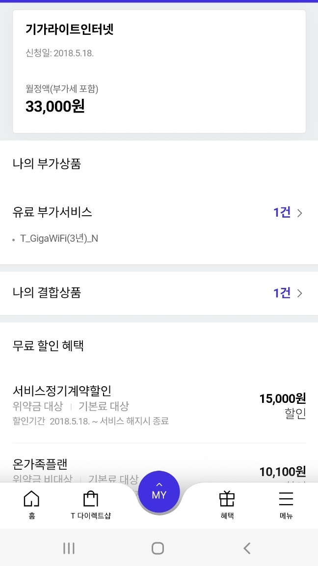 *500메가 인터넷 33,000원 -> 11,110원 할인 = 21,890원