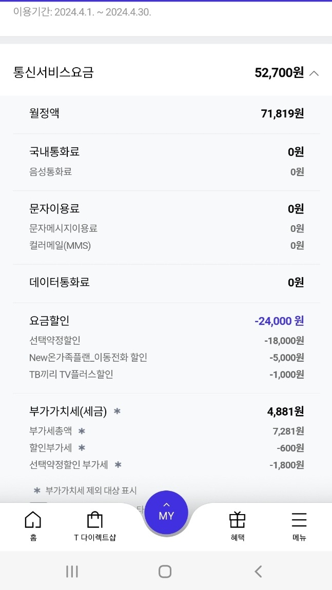 이렇게 인터넷과 휴대폰 요금에서 각각 할인이 들어간답니다