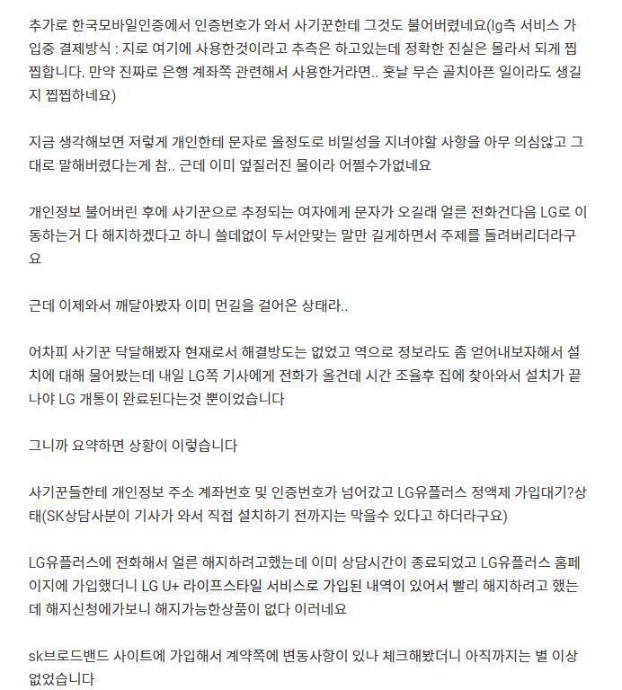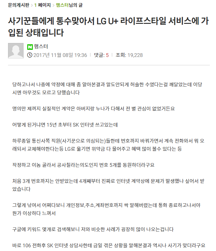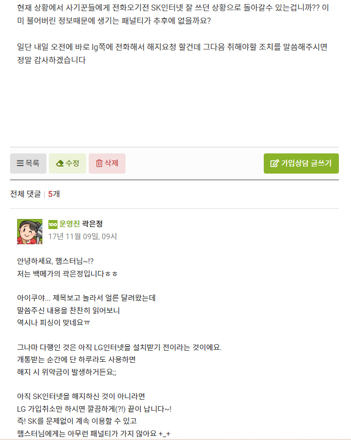 지금 돌아보면 계약한 통신사 직통 상담센터도 아니고 통신3사 신규or변경가입 관련 문의가 주 내용인 게시판에 왜 저딴걸 올렸는지 싶기도 합니다만..