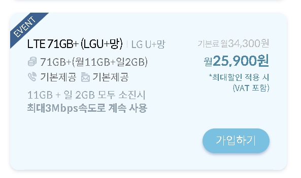 LTE 71GB+(LGT+망)
