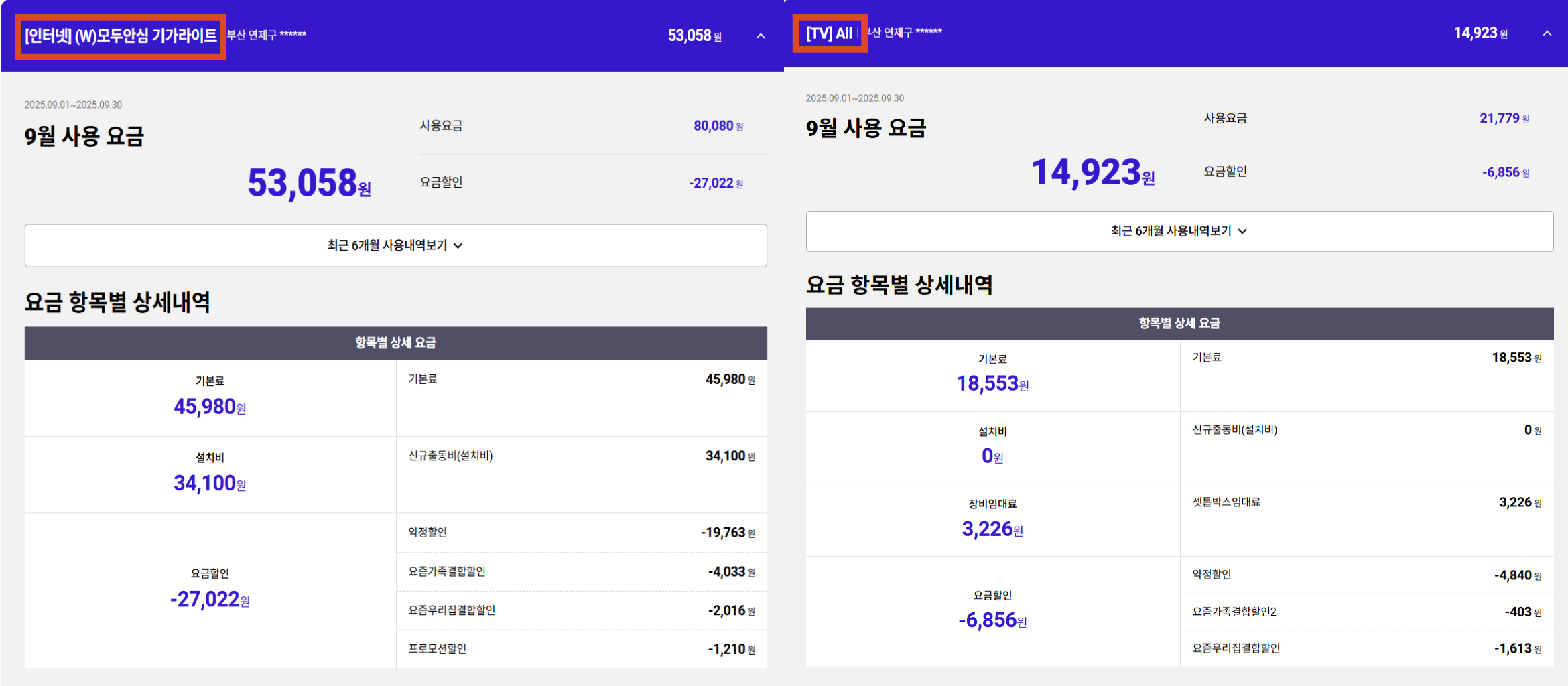기존 kt 인터넷과 티비를 사용 중이었습니다.