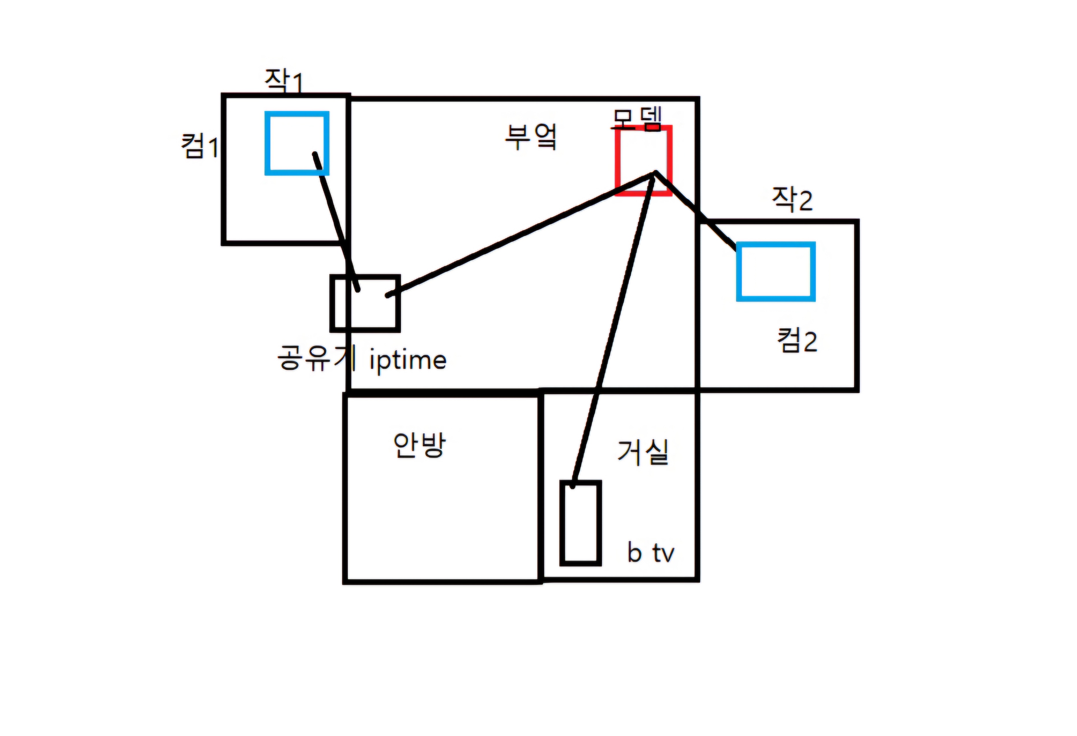 인입선의 모뎀과 ↔ 게임용 컴2는 랜선(=유선)으로