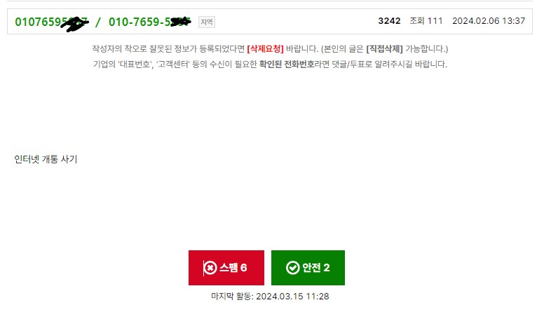 입 사기 번호라고 뜨더라구요...