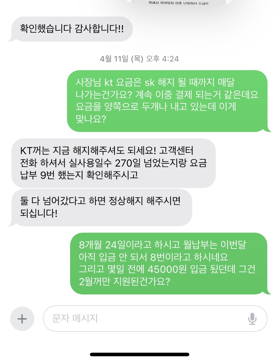 그리고 2주 뒤인가 다시 문의를 드렸는데 KT는 이제 해지해도 된다고 고객센터 전화해서 몇일 금